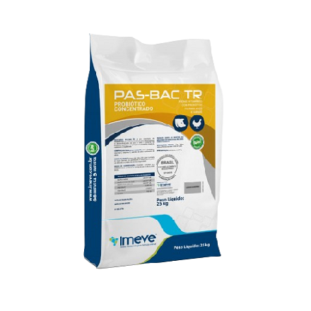 PAS BAC TR é uma associação de probiótico com vitaminas, indicado para as diversas fases de desenvolvimento de aves e suínos. A presença do probiótico auxilia na recuperação da microbiota intestinal, mantendo-a equilibrada Modo de usar Fornecer de 100 a 200 g por tonelada de ração farelada ou peletizada. O fornecimento pode ser alterado a critério do técnico responsável.