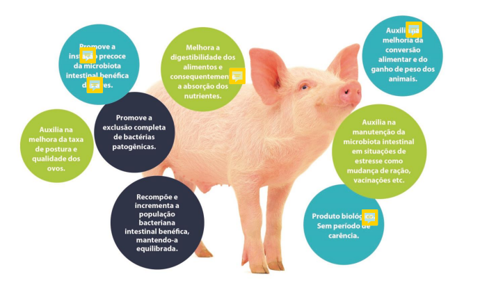DBI PROBIÓTICO CONCENTRADO - PÓ ORAL PARA SUÍNOS é indicado para suínos em todas as fases de criação. O produto contribui para o equilíbrio da microbiota intestinal.
